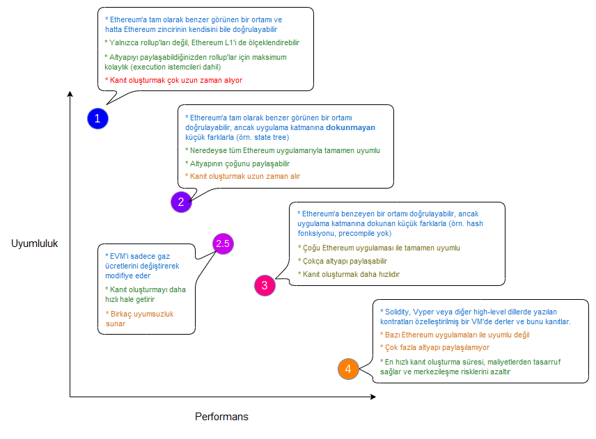 - Tip 2 veya Tip 3 ZK-EVM, Ethereum'un daha ZK dostu olma çabasıyla