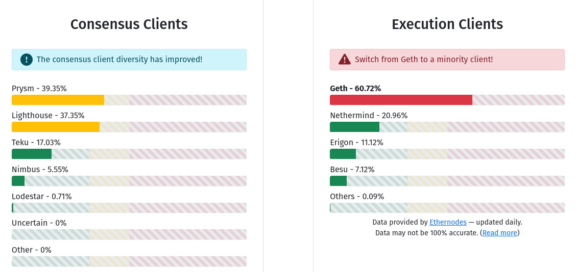 execution client. As of today, no consensus or execution client makes up