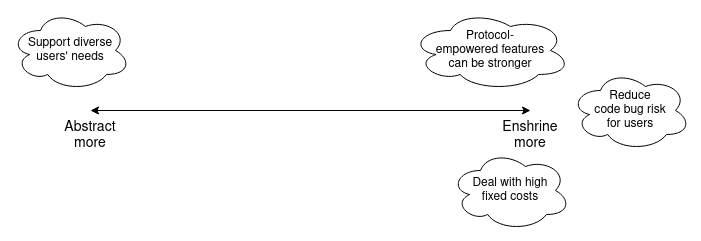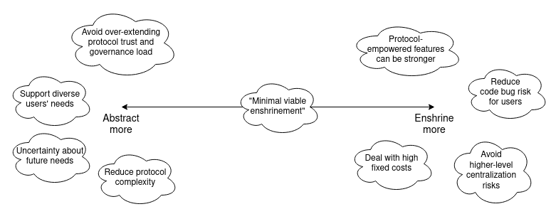 This post will go into some of the philosophical reasoning behind the original minimal-enshrinement philosophy, as well as some more recent ways of thinking about some of these ideas. The goal will be to start to build toward a framework for better identifying possible targets where enshrining certain features in the protocol might be worth considering.