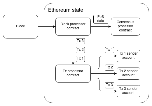 The "state transition function" (the function that processes a block) would just be a single VM call, and all other logic would happen through contracts: a few system-level contracts, but mostly contracts provided by users. One really nice feature of this model is that even an entire hard fork could be described as a single transaction to the block processor contract, which would be approved through either offchain or onchain governance and then run with escalated permissions.