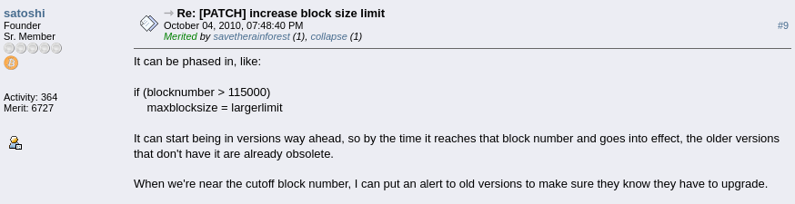from its then-current value of 1 MB to a higher value, allowing Bitcoin