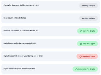 The "key bills" that StandWithCrypto tracks. There is no attempt made whatsoever to judge politicians on freedoms related to cryptography and technology that go beyond cryptocurrency.