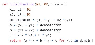 A line function: \(ax + by + c\). If you turn it into an equation by forcing it to equal 0, then you might recognize it as a line in what high school math calls "standard form".